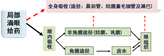藥物在眼部靶部位可達到的發揮治療作用的有效濃度,受生理屏障(淚液更新、鼻淚管排泄、眨眼)、眼內擴散屏障(角膜屏障、血-房水屏障、血-視網膜屏障)、蛋白結合(炎癥時房水蛋白升高,藥效下降)、外排轉運體(P-gp、MRP、BCRP)、藥物與黑色素的親和力等因素的影響。