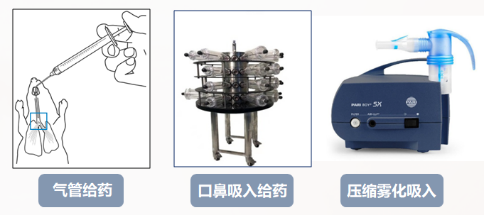 動物吸入給藥方式包括口鼻吸入給藥、氣管給藥、壓縮霧化給藥,各有優缺點。氣管給藥可以精確定量給藥,但需在麻醉狀態下給藥,常用來開展探索性試驗。口鼻吸入給藥與實際臨床給藥方式相近,可以評估藥物在上呼吸道的暴露情況,無需麻醉,且一次可進行多只動物給藥,是申報藥代研究常用的給藥方式。壓縮霧化給藥與臨床給藥方式最相近,但無法評估實際給藥劑量。