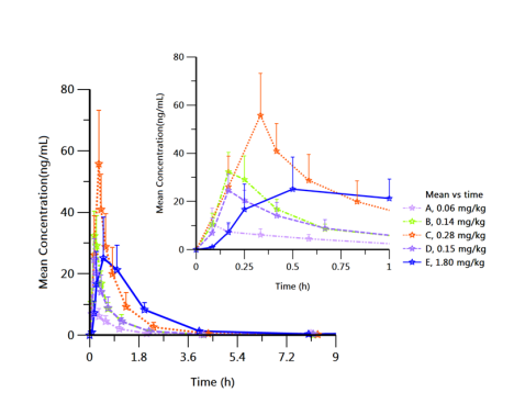 圖7 LW23122吸入給藥血藥-濃度時間曲線圖