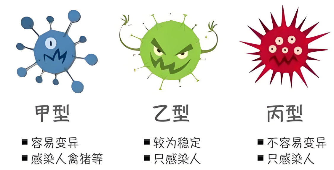 流感病毒傳播迅速,每年可引起季節性流行,兒童、孕婦、老人以及慢性基礎疾病患者等高危人群,患流感后出現嚴重疾病,已成為全球性的公共衛生安全問題,而接種流感疫苗可預防流感病毒及其并發癥。流感病毒感染動物模型的臨床病理特征及進展程度應與人相似,雪貂為首選動物(EMA)。小鼠通常被認為非疫苗保護研究優選動物,但由于BALB/c小鼠對流感病毒敏感,有明顯的癥狀和體征,近年大部分流行毒株如H1N1、B/Victoria、B/Yamagata均可導致出現小鼠體重下降、肺病毒載量上升、輕到中度間質性肺炎等感染特征,且BALB/c小鼠的生長周期短,遺傳背景明確,便于操作,常用于流感疫苗的效價評估。本研究通過建立BALB/c小鼠B/Austria/1359417/2021(B/Victoria Lineage) 病毒感染模型,可引起中度及以上間質性肺炎和一定程度的病毒載量升高,為后續流感疫苗評價提供依據。圖1 常見的流感病毒類型評價案例分析