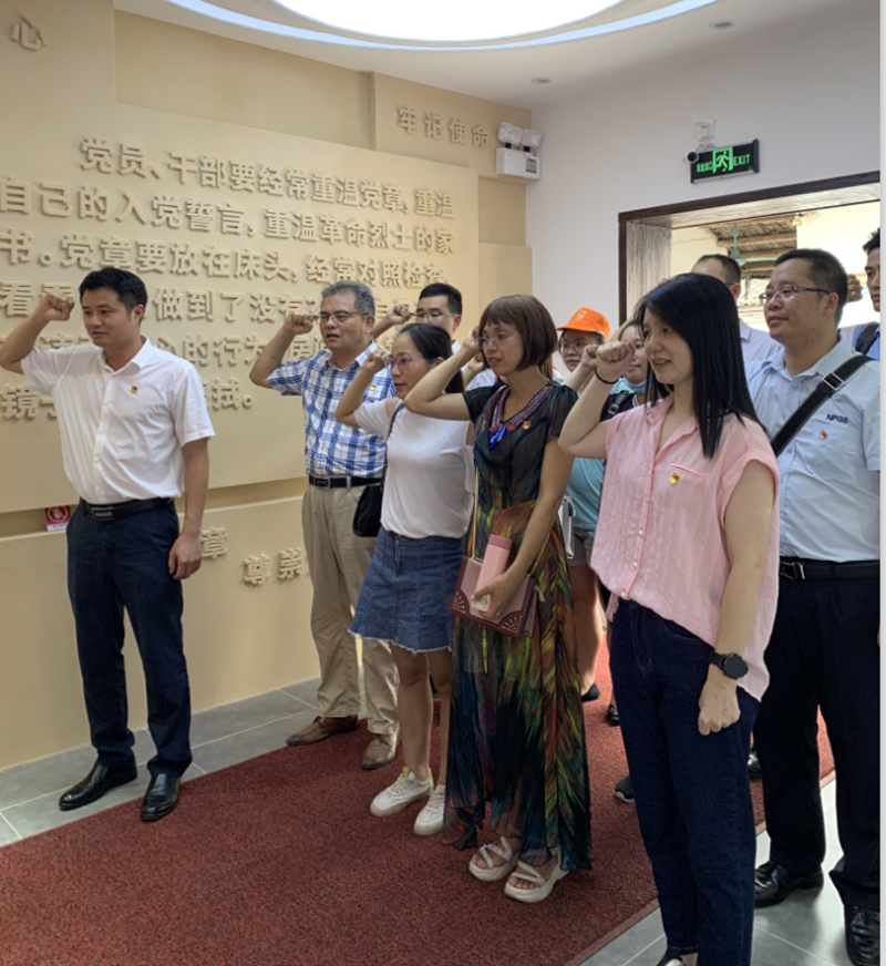 會后,與會黨員同志赴紅色教育基地—從化區呂田鎮蓮麻村黃沙坑革命舊址紀念館,開展黨性修養提升活動。活動中,黨員同志們認真觀看了眾多珍貴的歷史圖片和實物,參觀了解了革命老區人民積極開展革命活動的歷史,重溫了東江縱隊從化大隊參加人民武裝部隊、抗日戰爭和解放戰爭活動的感人歷史,讓黨員深入了解了從化的革命、建設和改革開放歷史,最后與會黨員共同在黨旗下重溫入黨誓詞,通過實地體驗喚醒身份、責任、使命意識,感受信仰的力量。